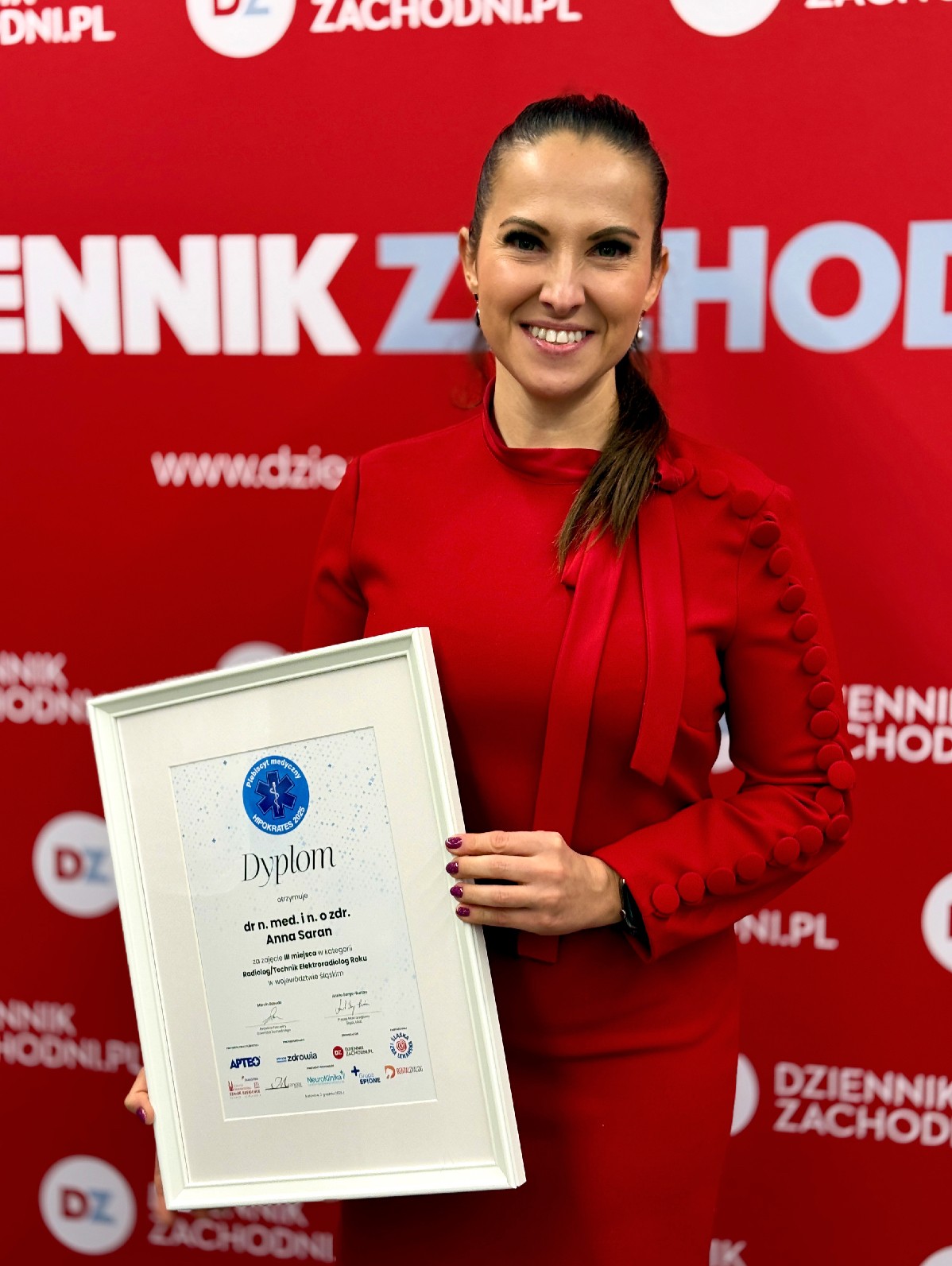 Z radością informujemy, że dr Anna Saran została doceniona w kategorii Radiolog/Technik Elektroradiolog Roku w województwie śląskim. Konkurs, organizowany przez Polska Press Grupa i prowadzony na łamach Dziennika Zachodniego, wyróżnia osoby, które swoją postawą, profesjonalizmem i empatią budują jakość opieki medycznej w regionie.