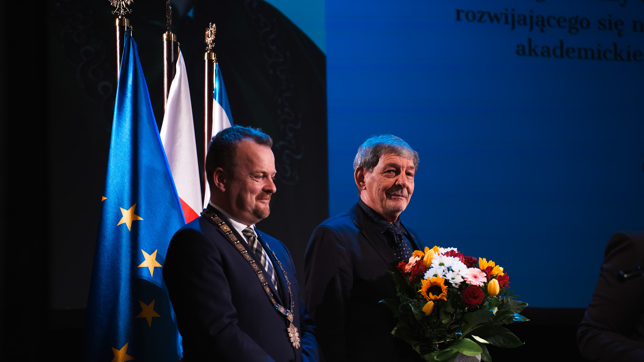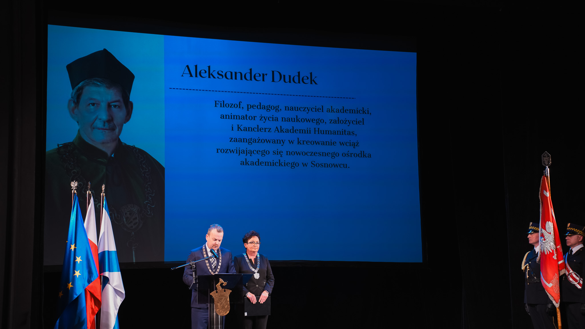 – Działalność Kanclerza nie ogranicza się tylko do zarządzania uczelnią. Aleksander Dudek jest również filozofem, intelektualistą i filantropem, który w 2010 roku powołał do życia Fundację Humanitas, która wspiera środowisko naukowe. Dla mnie osobiście Pan Kanclerz jest znakomitym menedżerem, liderem, nauczycielem oraz mentorem, który swoją pasją i zaangażowaniem inspiruje zarówno studentów, jak i kadrę akademicką. To dzięki niemu jestem dziś tym, kim jestem, gdyż w 2004 roku to właśnie Aleksander Dudek namówił mnie, by zostawić dziennikarstwo dla nauki i dydaktyki. Jego wkład w rozwój środowiska akademickiego i lokalnej społeczności jest nieoceniony. I zaczął się na długo przed powstaniem Akademii Humanitas, gdyż jeszcze w latach 80. minionego wieku Pan Kanclerz pracował jako wykładowca w Instytucie Filozofii Uniwersytetu Śląskiego