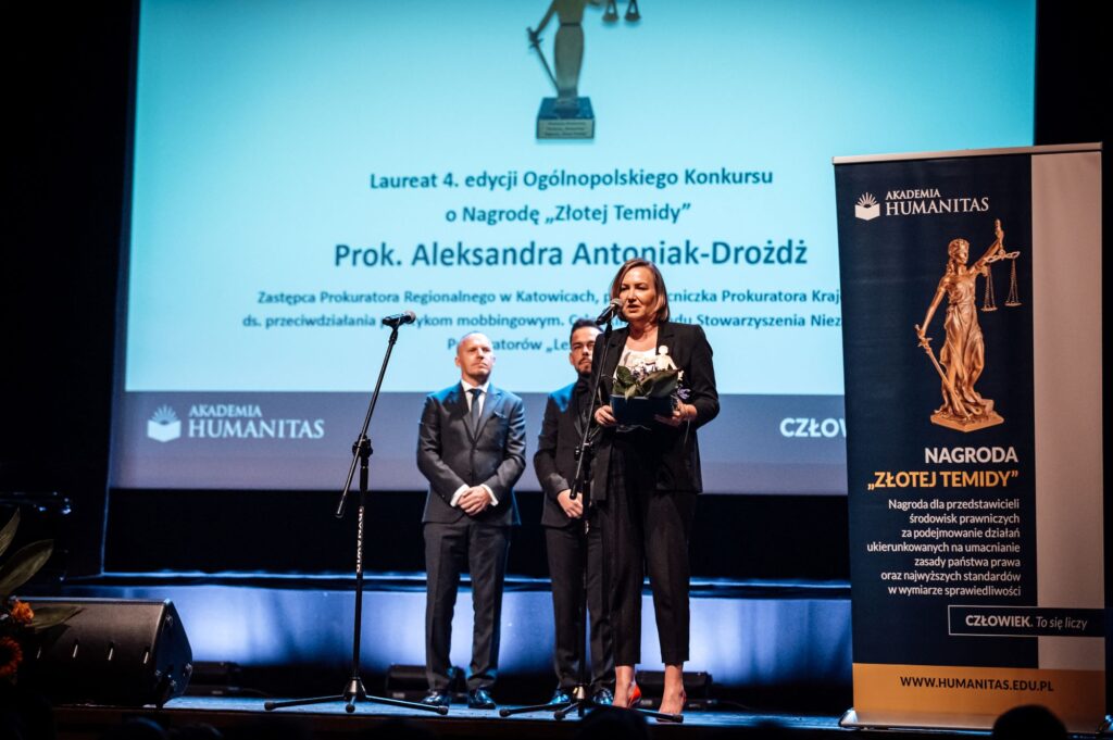 Drugą laureatką nagrody Złotej Temidy była prokurator Aleksandra Antoniak – Drożdż, zastępca Prokuratora Regionalnego w Katowicach, pełnomocniczka Prokuratora Krajowego ds. przeciwdziałania praktykom mobbingowym, a także Członkini Zarządu Stowarzyszenia Niezależnych Prokuratorów „Lex Super Omnia.
