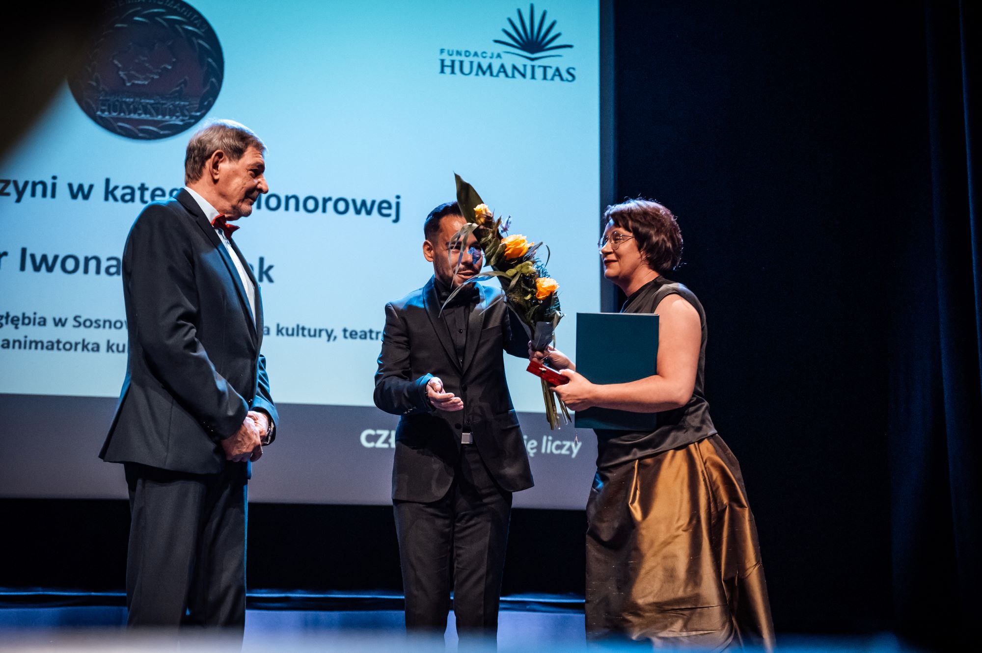 Pierwszy medal Nagrody Akademii Humanitas w dowód uznania osiągnięć w pracy artystycznej na rzecz Zagłębia Dąbrowskiego oraz działań ukierunkowanych na popularyzację historii i budowanie tożsamości regionu otrzymała dr Iwona Woźniak – dyrektorka Teatru Zagłębia w Sosnowcu, menadżerka kultury, teatrolożka, animatorka kultury, reżyserka.