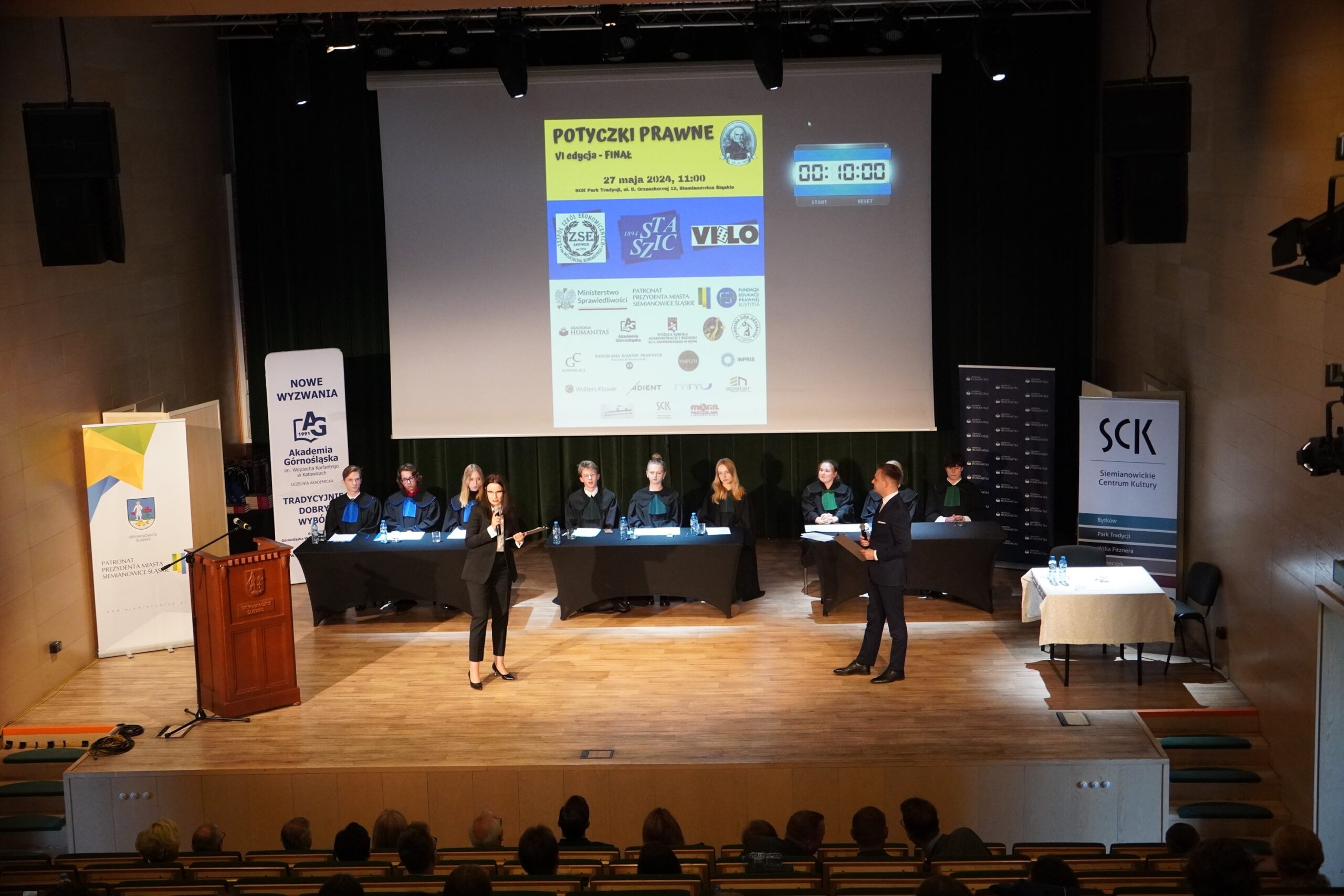 Finał 6. edycji Potyczek Prawnych już za nami. W tegorocznych rozgrywkach, które odbyły się 27 maja 2024 roku w Siemianowickim Centrum Kultury, rywalizowali uczniowie z trzech szkół: Zespołu Szkół Ekonomicznych im. Wojciecha Korfantego w Katowicach, IV Liceum Ogólnokształcącego z Oddziałami Dwujęzycznymi im. Stanisława Staszica w Sosnowcu oraz VI Liceum Ogólnokształcącego im. Obrońców Helu w Gdańsku.