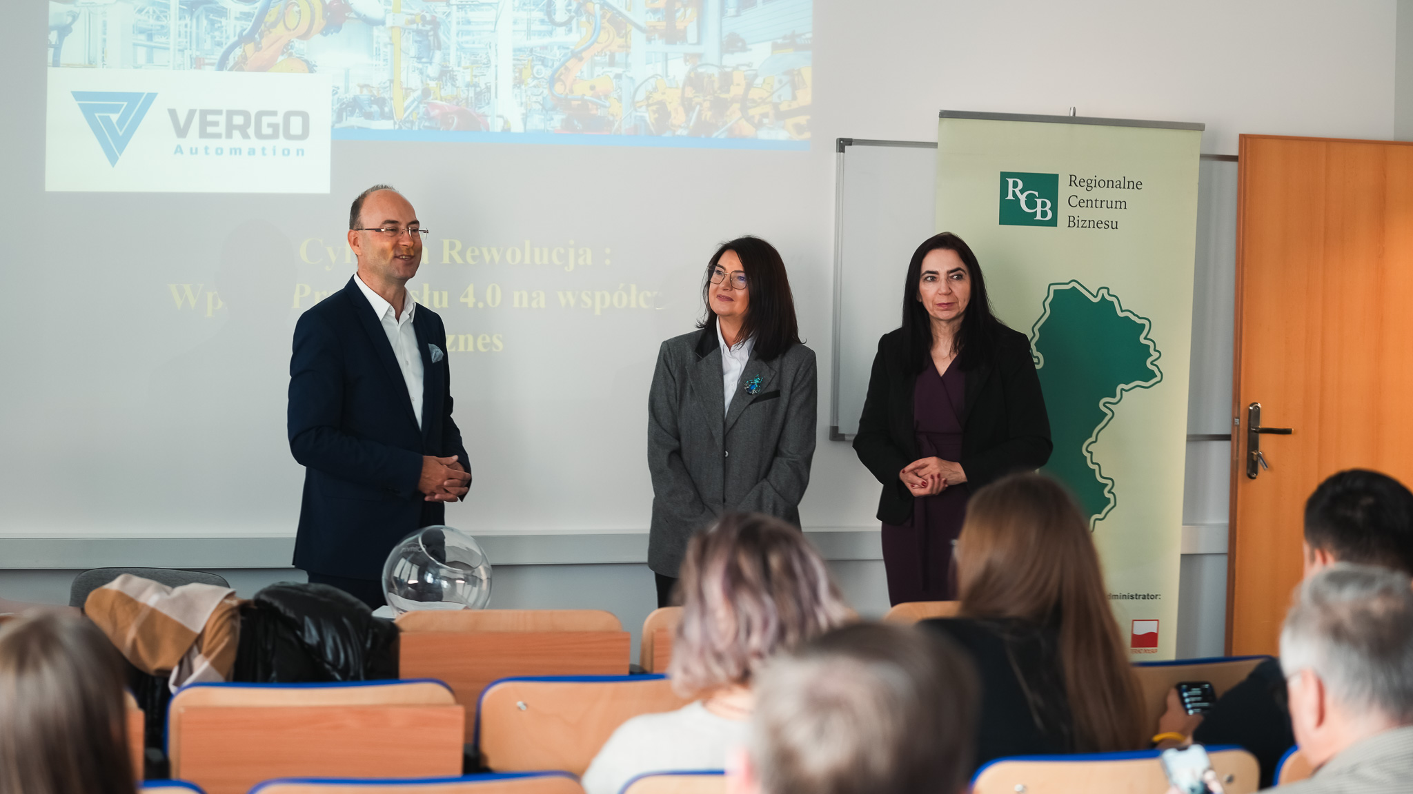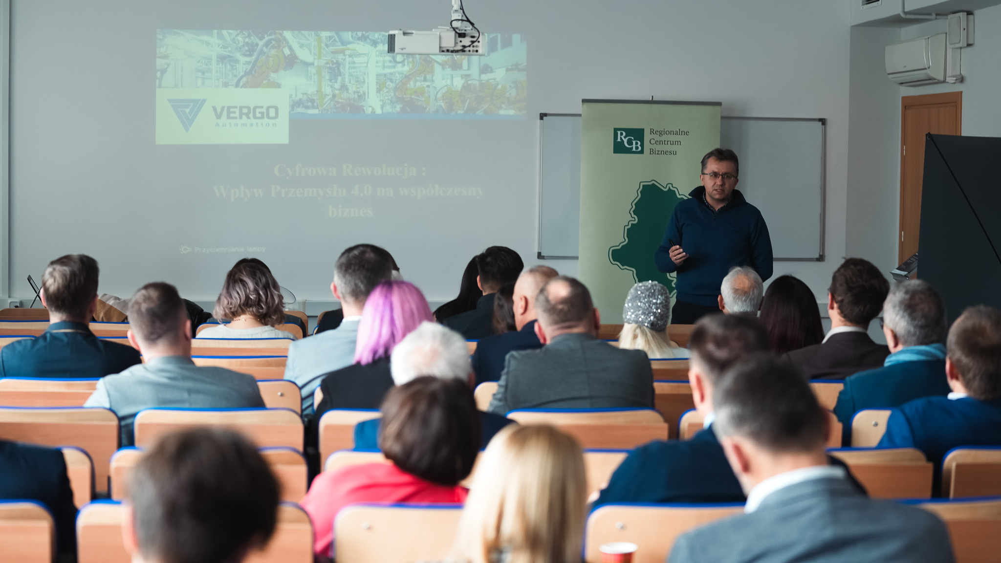 Głównym prelegentem wydarzenia był Krystian Bogdanik, właściciel Vergo-Automation Sp. z o.o., który w interesujący sposób przedstawił kluczowe aspekty Przemysłu 4.0. Prelekcja pozwoliła uczestnikom spojrzeć na Przemysł 4.0 z nowej perspektywy – jako na narzędzie, które nie tylko optymalizuje procesy, ale także otwiera przed firmami zupełnie nowe możliwości, w tym zwiększa ich konkurencyjność.