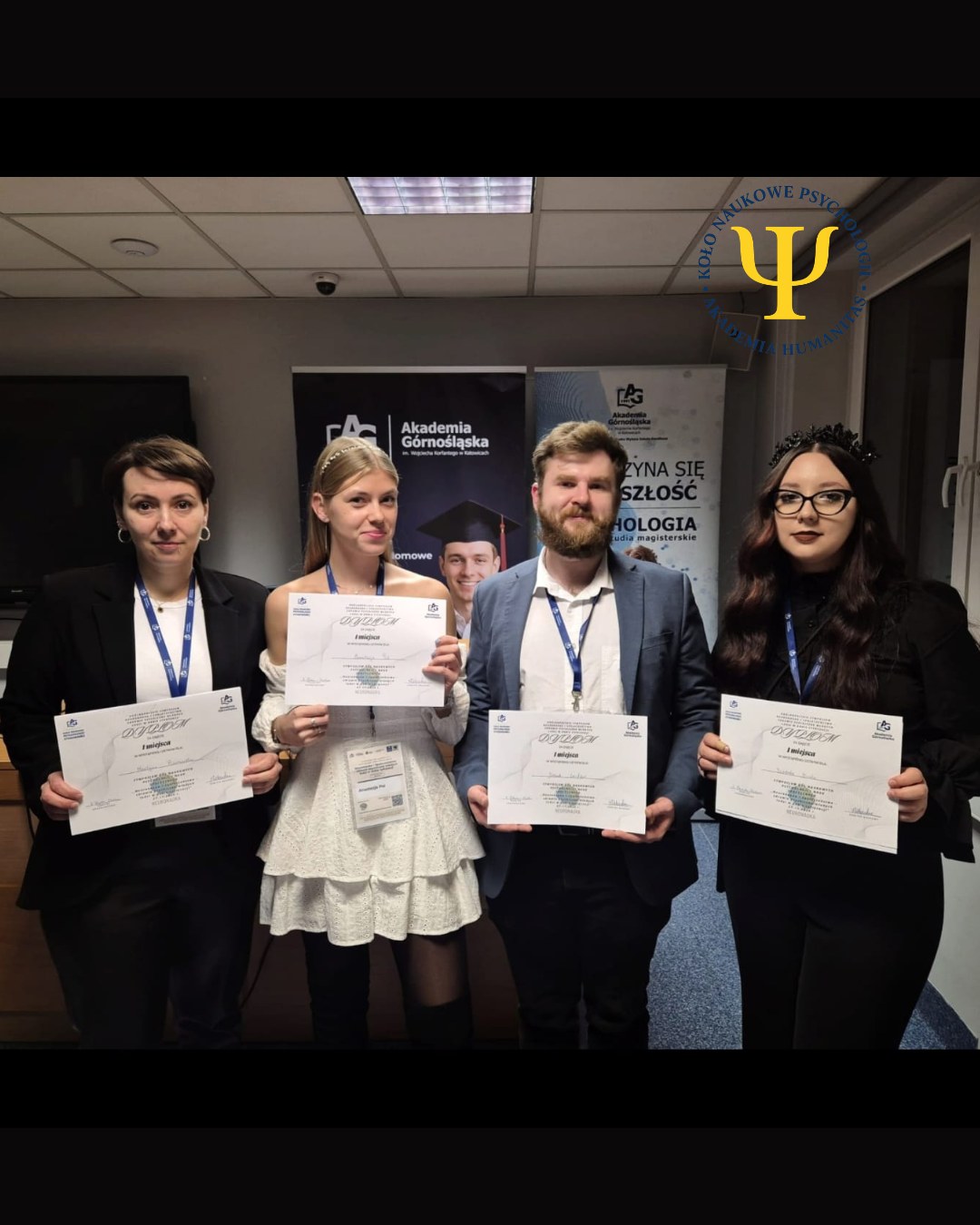 Największe brawa należą się zespołowi w składzie: Izabela Minda, Jakub Seiffert, Martyna Piankowska, Anastazja Pol i Marcin Noras, który zdobył I miejsce w kategorii wystąpień ustnych. Studenci zaprezentowali niezwykle aktualny i śmiały projekt badawczy pt. Psychopatia, narcyzm, makiawelizm i sadyzm oraz ich związki z uzależnieniem od pornografii i jakością życia wśród młodych dorosłych. Ich praca spotkała się z dużym uznaniem jury, zarówno za odwagę badawczą, jak i profesjonalne przygotowanie.