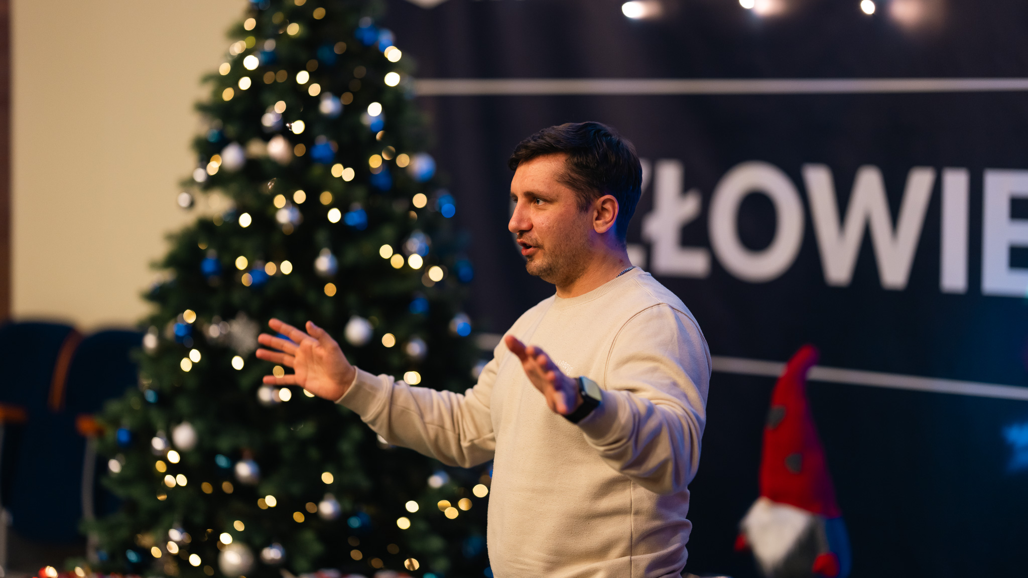 Każdy student otrzymał od Mikołaja świąteczny prezent, który wywołał wiele uśmiechów i pozytywnych emocji. Po wręczeniu upominków uczestnicy wydarzenia zasiedli do wspólnego oglądania świątecznego filmu. Projekcja stworzyła idealną przestrzeń do rozmów, integracji i budowania relacji między studentami różnych narodowości. Wspólny czas upłynął w atmosferze radości, życzliwości i świątecznego ciepła.