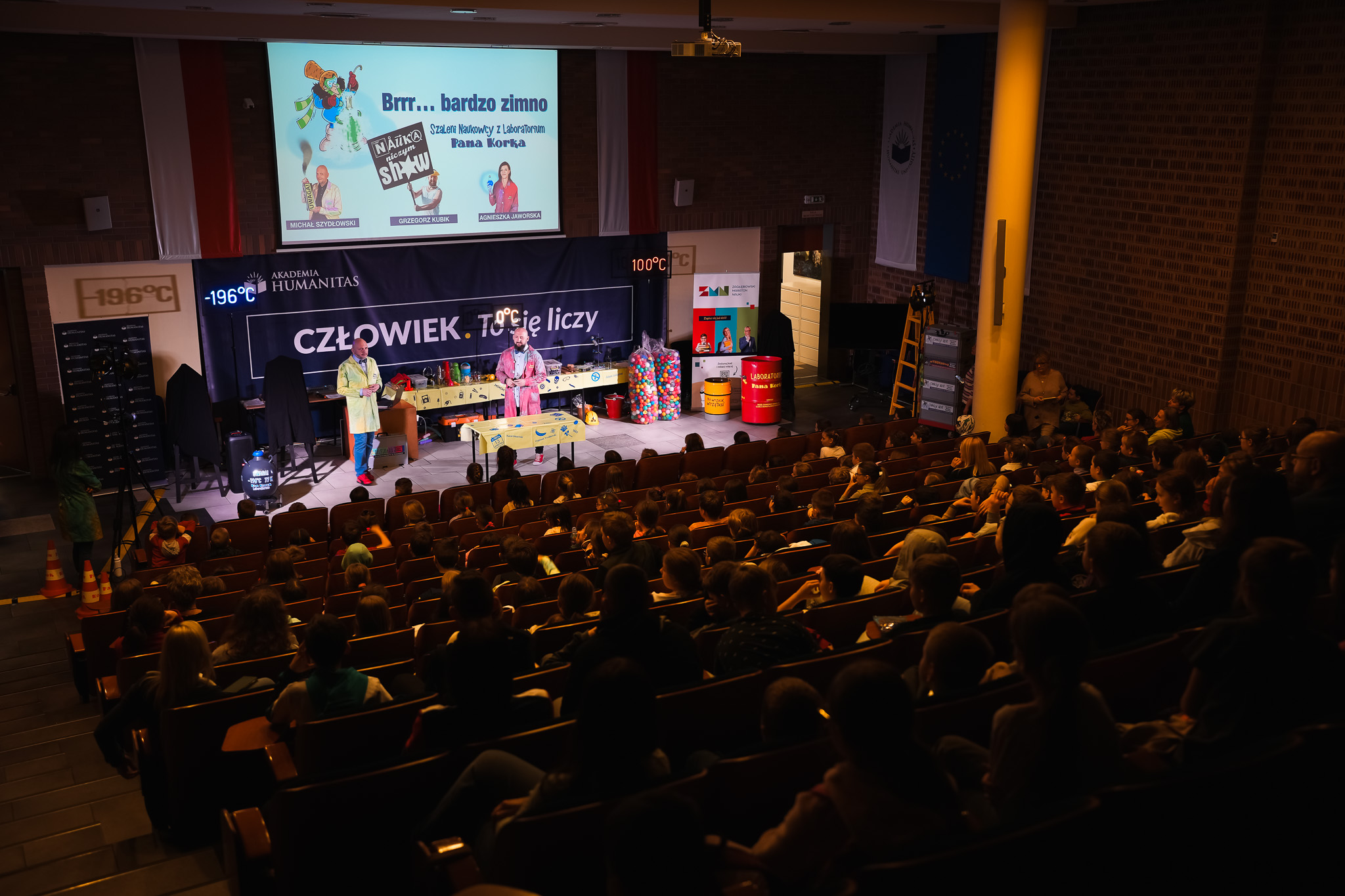 Nie zapomnieliśmy o najmłodszych uczestnikach Zagłębiowskiego Maratonu Nauki. Tym razem Michał Szydłowski, znany jako Pan Korek, wraz z ekipą Szalonych Naukowców, zaprosił na edukacyjne widowisko Brr, jak zimno, pokazując bezpieczne zastosowania ciekłego azotu. To fascynujące doświadczenie pozwoliło dzieciom poznać świat ekstremalnie niskich temperatur i ich praktycznego wykorzystania. Były wybuchy, dymy, morze kolorowych piłek, czyli to wszystko co dzieci lubią najbardziej. Dziękujemy za uczestnictwo szkołom podstawowym: