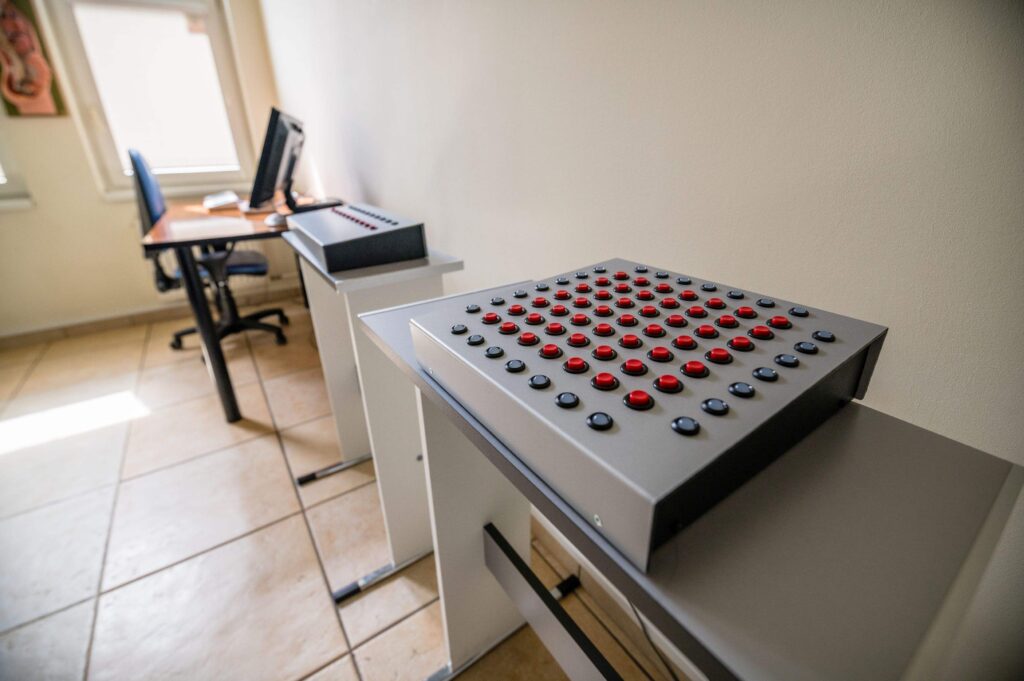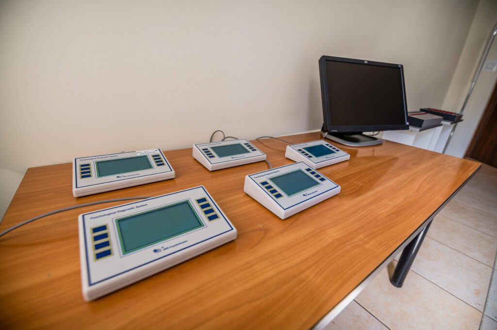 Oprócz tradycyjnych narzędzi diagnostycznych, w pracowni znajdziesz nowoczesne elektroniczne urządzenia do badań psychologicznych, takie jak Aparat Piórkowskiego, Aparat Krzyżowy, Miernik Parametrów Reakcji czy Tablice do testu Poppelreutera. Dzięki nim: