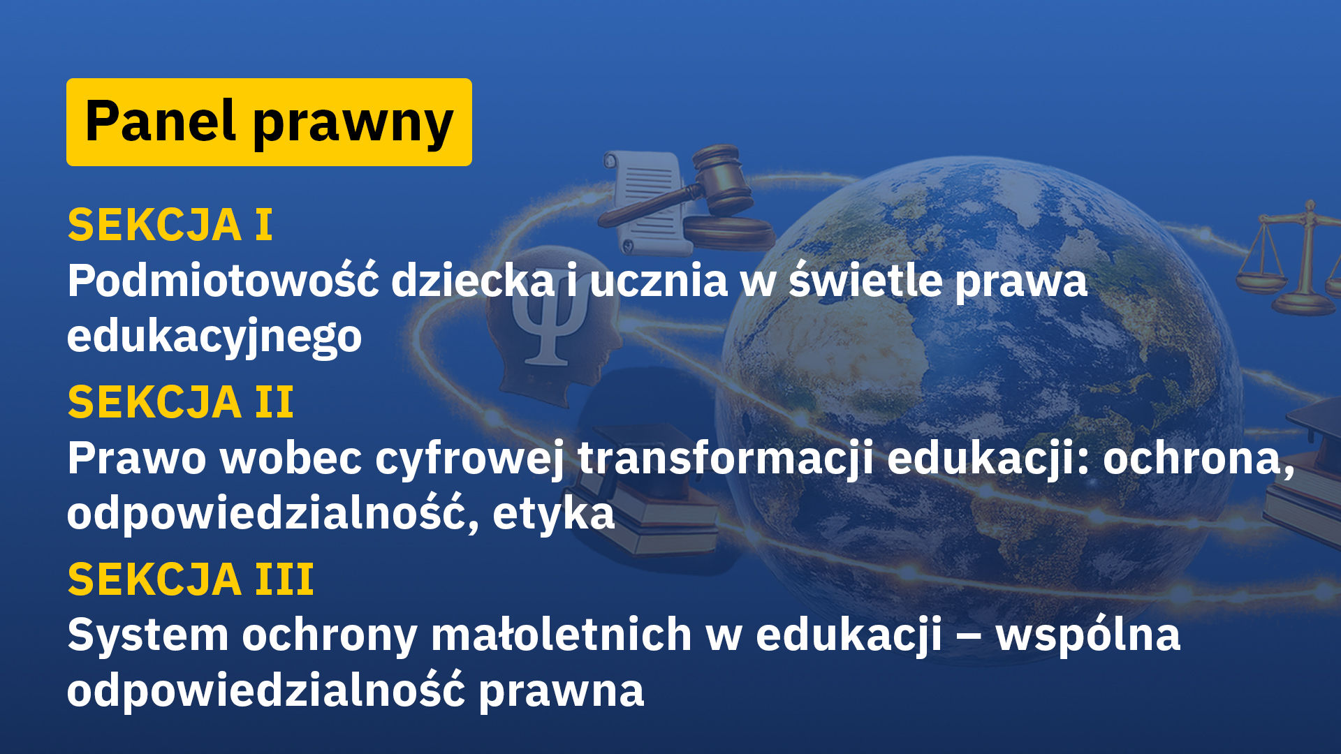 Panel prawny skoncentrowany będzie na roli prawa w kształtowaniu nowoczesnego, bezpiecznego i odpowiedzialnego systemu edukacji. W ramach dyskusji uczestnicy podejmą zagadnienia dotyczące praw dziecka i ucznia w realiach cyfrowej transformacji oraz wyzwań prawnych i etycznych związanych z wykorzystywaniem nowych technologii w edukacji.