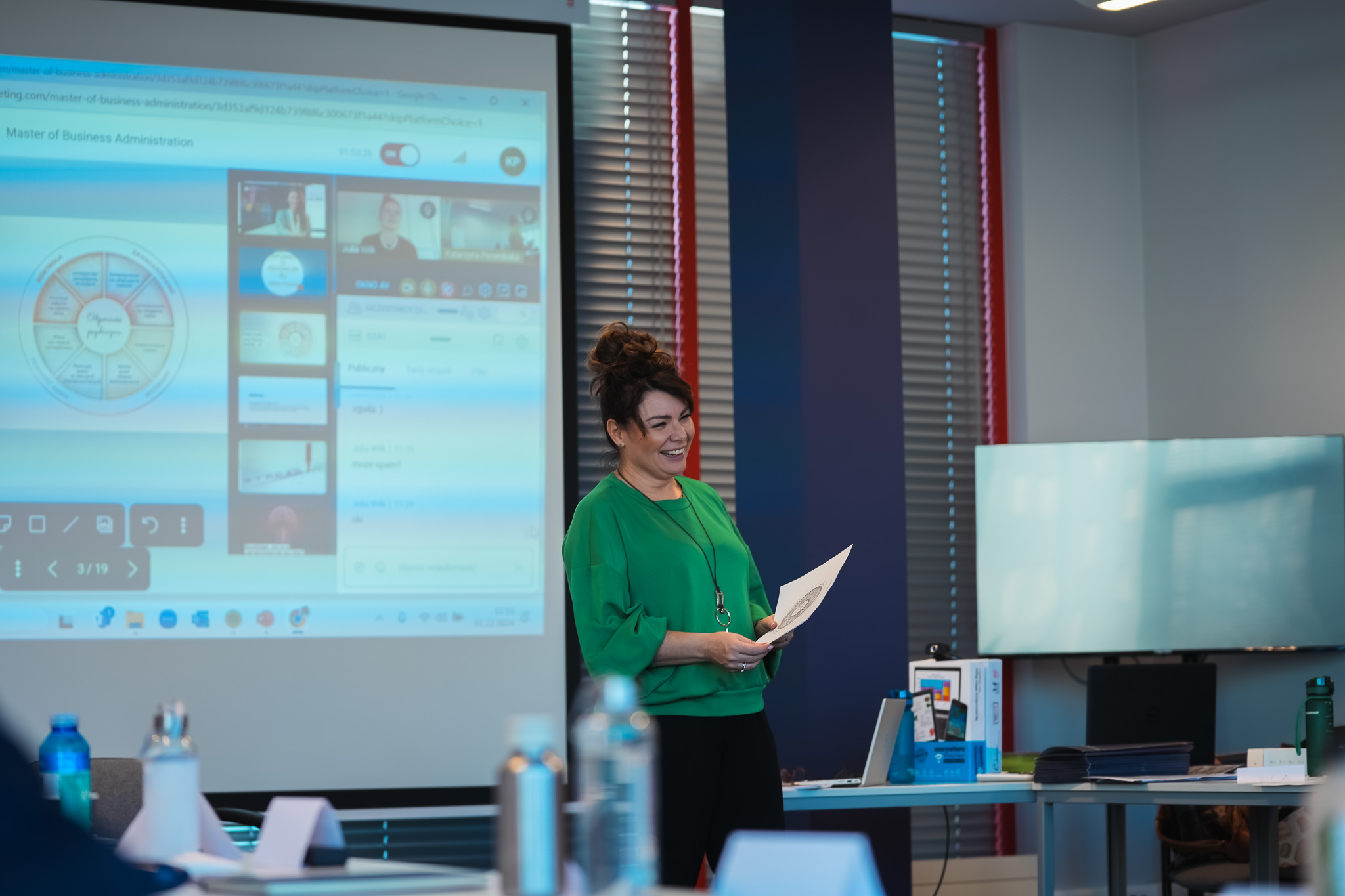 Kształcimy menedżerów średniego i wyższego szczebla, którzy potrafią podejmować decyzje w dynamicznym, zglobalizowanym i zrównoważonym środowisku biznesowym. Nasz program rozwija zarówno umiejętności twarde, jak i kompetencje miękkie, wspierając świadome przywództwo oraz osobistą efektywność liderów przyszłości.